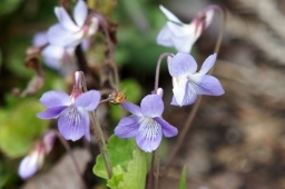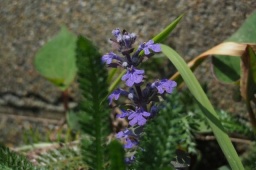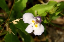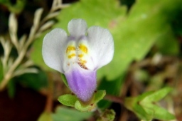 花は唇形花で淡紫色。下唇に黄色と赤褐色の斑紋がある