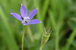 帰化種のキキョウソウは茎の途中でも開放花あり