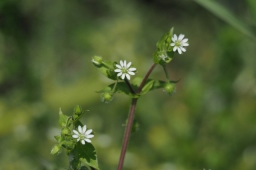 北アメリカ原産の一年草で、道端で見られる。先端部に開放花で、